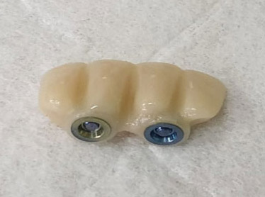 Here is the new temporary bridge on the incisors with the fixed sleeve.