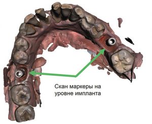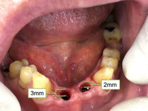 After the installation of implants at positions 31 and 42, the height of the gums is 3 mm and 2 mm.